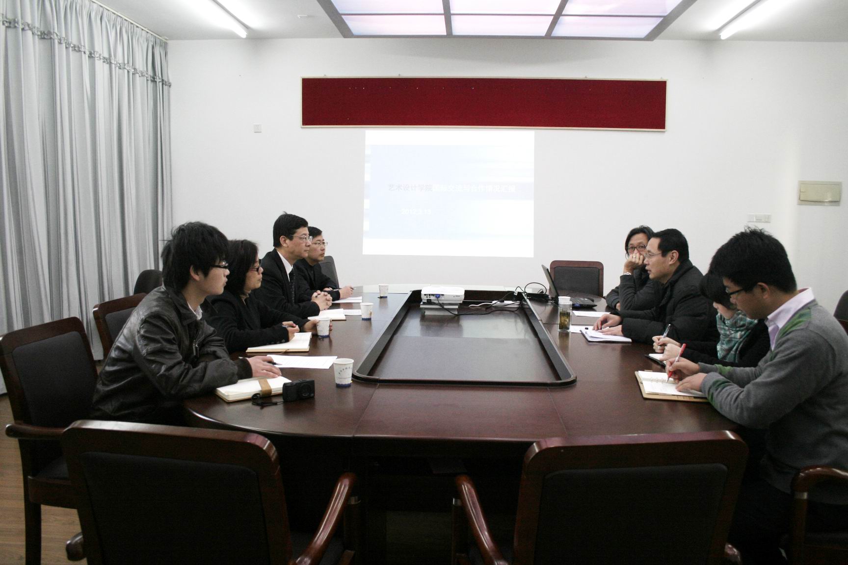 |  3月13日上午,程维明副校长在国际交流处钱慧敏常务副处长、外事主管李利国老师等陪同下深入艺术设计学院调研指导国际交流工作,调研座谈会在艺A510室举行。院长张杰、副院长吴亚生等参加了座谈会。 会上,院长张杰首先介绍了学院海外留学背景教师基本情况、推进措施和管理办法、交流的主要形式、教师交流与合作等情况;副院长吴亚生详细全面介绍了学院国际交流的国家和高校,开展合作的方式和经历。张院长与吴副院长还对目前国际交流工作中所面临的困难和存在的问题与国际交流处的老师做了交流。 程维明副校长一行在听取汇报后,对学院多元化、多层面的开展国际交流工作表示肯定,对近几年来艺术设计学院国际交流工作取得的成绩给予了高度评价,对学校层面在推进国际交流工作开展一些想法与措施作了介绍,并对学院通过国际交流提升师资水平、科研水平、办学水平提出了要求,希望艺术设计学院目前国际交流的大好形势下,在大批海外留学背景的教师的参与下,团结进取,勇于开拓,进一步发挥了学校对外窗口的作用,促进学校的更好发展。