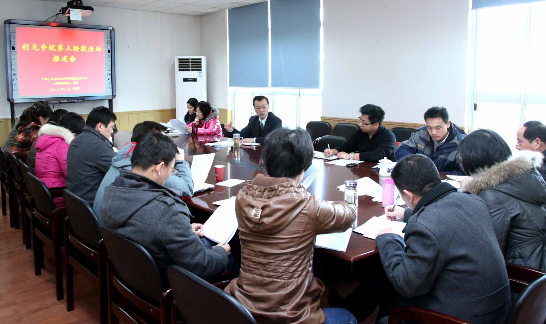 |  3月14日上午,高职学院党委召开了创先争优第三阶段工作推进会,学院各党支部书记、党办、团委、督导办、退管会等相关部门负责人参加了会议,会议由学院党委柳如荣书记主持。 会上,学院各党支部分别汇报了目前在创先争优第三阶段的活动主题、活动开展等情况。基础教学党支部以“一、二课堂联动,师生牵手共进”为主题,确立了服务师生、树立典范形象的活动目标;制造工程系学生党支部确立了“牵手你我、成长共进”的主题,开展了多层次的结对互助活动。 学院党委柳如荣书记充分肯定了各支部按照学院党委的要求结合支部特色所开展的各项活动。他强调,要真正做好创先争优第三阶段的工作,听取意见是基础,选准切入点是重点,基层党建工作要创新计划,将创先争优第三阶段的工作落到实处。会后,学院党委柳如荣书记就学院的价值取向大讨论、向第十次党代会建言献策、学院第五届文化艺术节等相关工作进行了部署。 广大党员会后纷纷表示,将积极落实和实践会议精神,以满腔热忱努力践行“为人民服务”的宗旨,向党的“十八大”献礼。 |