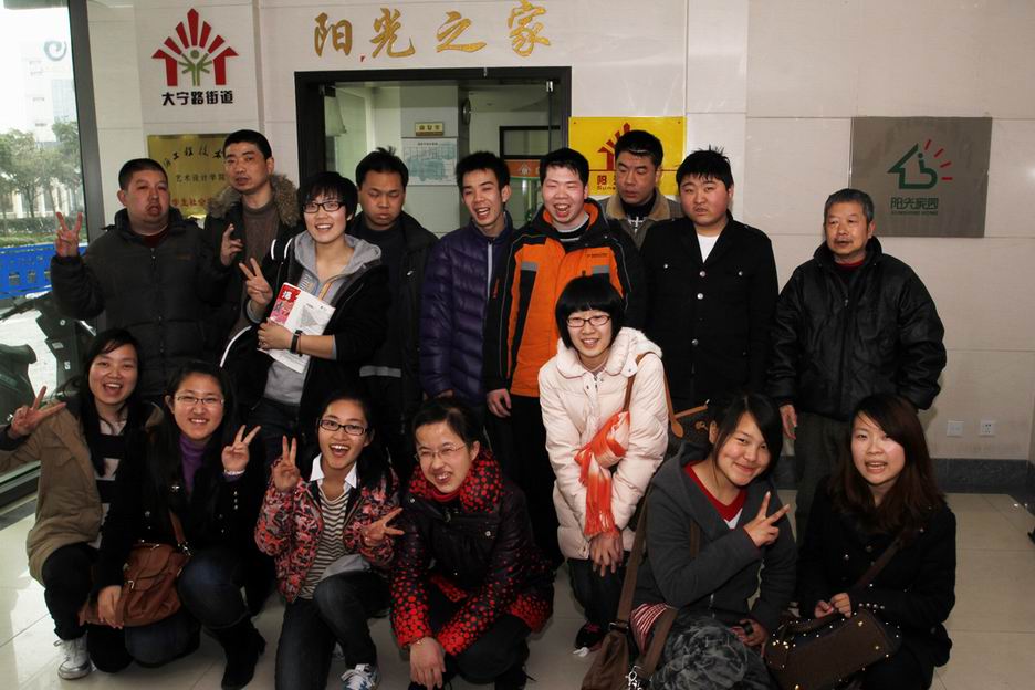 3月16日下午,艺术设计学院志愿者部来到位于闸北区大宁街道的“阳光之家”,给那里的智障朋友带去欢乐与关怀,发扬关爱弱势群体的传统美德。 志愿者们一踏进阳光之家的大门,就受到了“阳光之家”学员的热烈欢迎。这已经不是志愿者们第一次来到这里,所以学员和志愿者们都感觉特别的亲切,如同是久违了的朋友一样。一首《童年》拉开了活动的序幕,整个活动室都沉浸在一片欢声笑语之中,通过游戏环节志愿者们融入了这些学员之中。临走之际,志愿者们纷纷向那些学员道上了真挚的祝福,并承诺今后有机会一定多来看望他们。 尽管这次的活动已经告一段落,但是整个社会关注弱势群体的行动不能停。我们应该更多的关注这些折了翅膀的天使,为创造和谐社会出一份力。 |
