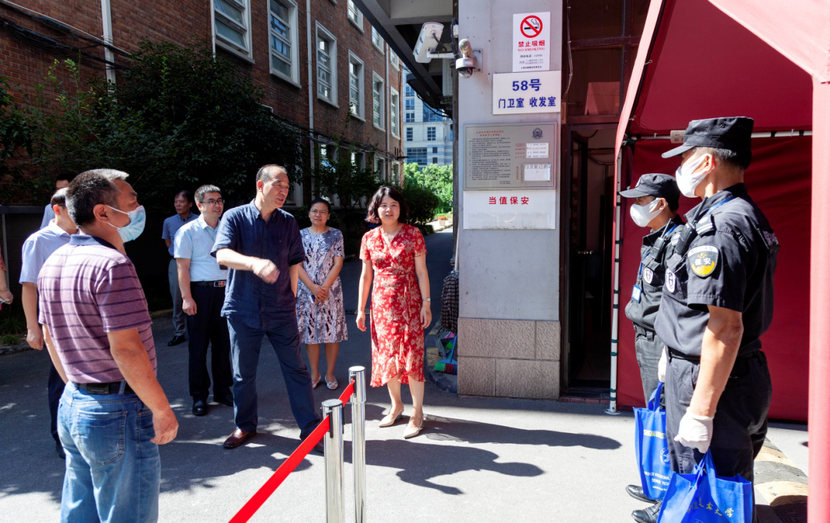 8月20日,正值酷暑高温,校党委副书记、副校长朱晓青赴逸仙路校区看望、慰问暑期坚守在岗位一线的师生员工,并送上防暑降温用品。