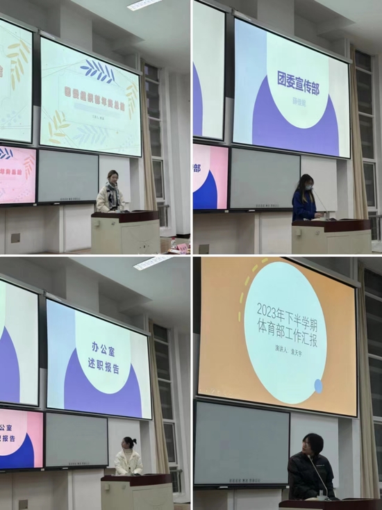 各部门负责人依次对于2023年工作情况进行总结汇报,重点汇报了2023年工作取得的成绩、不足之处以及未来的工作计划。各部门一致表示要积极总结工作经验,提高工作效率,充分调动部门成员的积极主动性,团结一致,砥砺前行,为学院团委、学生会的工作做出更大的贡献。