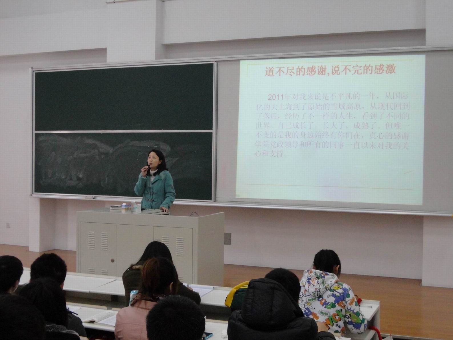 3月22日中午,管理学院第54期党的基础知识培训班在教学楼F120举行了第三讲课程的授课,此次培训邀请到了西藏挂职干部、管理学院分团委书记周家樑老师来为入党积极分子进行授课,管理学院党委副书记虞蓉老师及组织员丁红娟老师出席。 此次授课中周家樑老师以自己在西藏的亲身经历为例,讲解了作为一名党员干部如何在实践工作发挥党员的先锋模范作用。周家樑老师首先为大家介绍了自己在西藏工作的工作环境及工作内容,周老师通过下乡走访调研、红色纪念活动、成立志愿者协会服务百姓、举办青年文娱活动,组织管理学院开展向谢通门县团委中小学生捐书捐物活动等一系列具有意义的活动,受到了当地新闻媒体的关注和好评。 周家樑老师还从自身的角度畅谈了自己在西藏的收获和感想,周老师也坦言了自己的思想变化,从不适应到慢慢接受再到感恩,在这个过程中锻炼了自身的能力,扩展了视野,也提升了自己的党性修养和奉献意识。周老师指出面对艰苦的工作,党员就是在平凡之处发扬奉献精神,积极为国家为社会为学校贡献自己的一份力量。随后周家樑老师还通过管理学的分析方法对自己的工作经历进行分析,如SWOT分析法及马斯洛需求模型,生动有趣的讲解方式深深吸引了在场的同学们。 最后周家樑老师总结了几点深刻的体会,一方面是国家的统一和稳定是根基,另一方面是结合灵活多变的管理方法,中国的统一和稳定是离不开中国共产党的正确领导和方向指引。收获到了三种情感:感恩、爱与珍惜,学会了四种精神:乐观、主动、激情及集体力量,体会到了五个敢字:敢于担当、敢于负责、敢于突破、敢于行动、敢于接受。周老师还表达了对学院领导给予的无限关心和同学们的关注,并向大家表示了感谢。周老师还勉励同学们在面对困境的时候以一名党员的标准来严格要求自己,在各方面积极主动,早日成为一名中共党员。 入党积极分子们在听取了周老师的报告后,对周老师的西藏工作经历表示了浓厚的兴趣,也充分了解了一名党员在工作中的积极表率,纷纷表达了崇敬之情,表示将在校期间继续努力,从身边的事情做起,严格要求自己,争取能够早日成为一名优秀的共产党员。 |