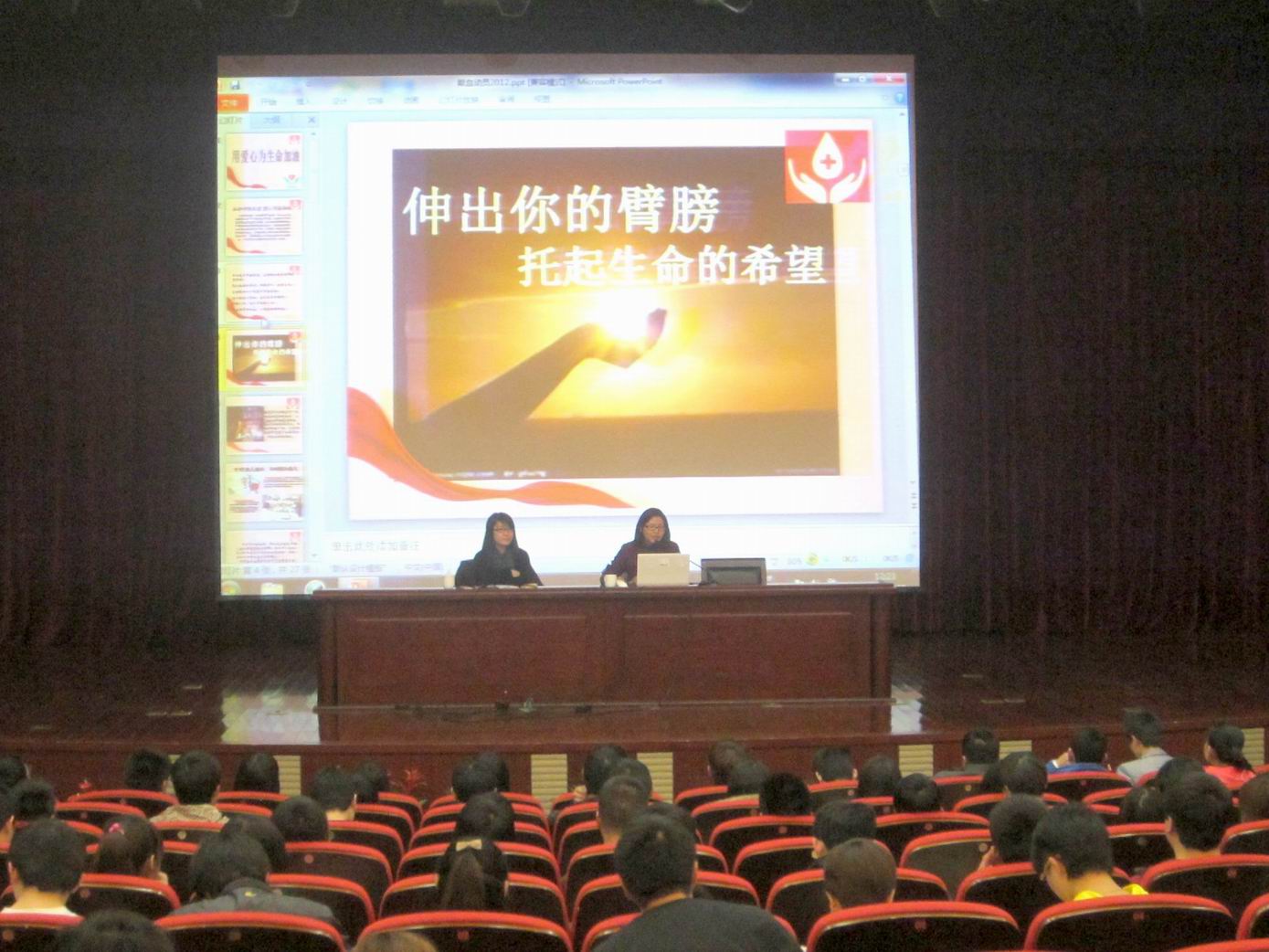 |  3月28日中午,汽车工程学院在图文信息中心志宏堂组织召开“用爱心为生命加油”2012年无偿献血动员会,汽车工程学院党总支副书记段海霞老师、辅导员潘爽老师以及汽车工程学院学生会副主席宋阳参加了本次动员会。 会议开始,院党总支副书记段海霞用献血活动中的各种事例,生动、翔实、全面地指出了此次活动重要意义,并且给同学们讲解一些献血时候需要注意的事项以及献血的流程,为大家消除潜意识中所担心的各种问题,鼓励大家奉献爱心为生命加油!她号召学生党员、学生干部走在献血队伍的最前面,起好模范带头作用。希望广大同学积极参与到“奉献爱心、回报社会”的献血活动中,展现汽车工程学院的风采,用实际行动体现汽车工程学院的学生的优秀品格。 随后宋阳学长现身说法,为大家讲述了他在2011年献血活动中的经历,并希望大家献出一份爱心,把温暖传递下去! 接着潘爽老师鼓励在场所有同学积极参加到本次活动中,为自己的青春增光添彩!会议在轻松愉快的氛围下落下帷幕。 此次动员大会不仅提高了同学们对献血的认识,更增强了同学们对社会的责任感。相信在4月10日汽车工程学院的献血活动中,会有众多的同学参与其中,用爱心为生命加油,勇敢伸出自己的手臂,让爱心传递,温暖永存,为社会贡献属于自己的力量。 |
