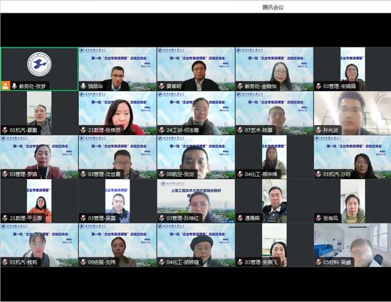 为充分发挥产业优势和企业协同育人作用,加强校企合作,进一步深入推动产教融合实践与探索,1月11日下午,教务处组织召开第一批“企业专家进课堂”总结交流会。副校长夏春明,教务处处长饶品华、副处长金晓怡,第一批“企业专家进课堂”课程负责人、拟申报第二批“企业专家进课堂”的教师等共计50余人出席了线上会议。会议由饶品华处长主持。