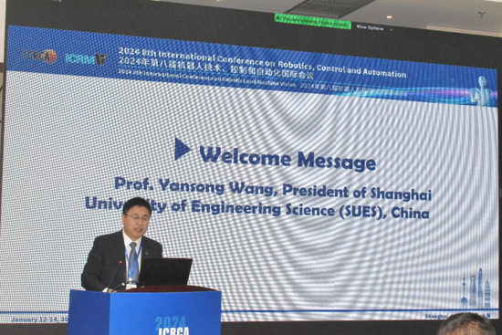 为加强我校机械工程学科内涵发展,促进国内外机器人技术相关研究领域的学术交流,1月13日下午,由上海工程技术大学主办的2024年机器人技术、控制和自动化国际会议在松江校区第一图文信息中心第三报告厅举行。副校长王岩松,来自加拿大康考迪亚大学、美国得克萨斯大学奥斯汀分校、澳大利亚墨尔本大学、日本法政大学、浙江大学、北京理工大学和华中科技大学等高校的120余名专家学者以及学校相关职能部处负责人出席开幕式。开幕式由机械与汽车工程学院院长方宇主持。