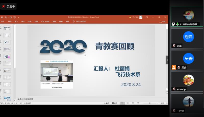 为深入贯彻落实习近平新时代中国特色社会主义思想,将“四史”学习教育的成效落实到教育教学质量提升的实际成果中,进一步提高学院女教师职业能力和女性教育的质量与内涵,航空运输学院党委和工会积极响应学校工会、妇工委的号召,于8月24日在线举办航空运输学院女教师职业能力提升交流研讨会,落实学校部署上海市第二届女性教育教学能力评选活动的动员与组织工作,为教师教学展示和交流搭建平台。学院党委书记虞蓉、学院工会主席吴菁、党政办副主任刘洋和各系室青年女教师参加了本次会议。