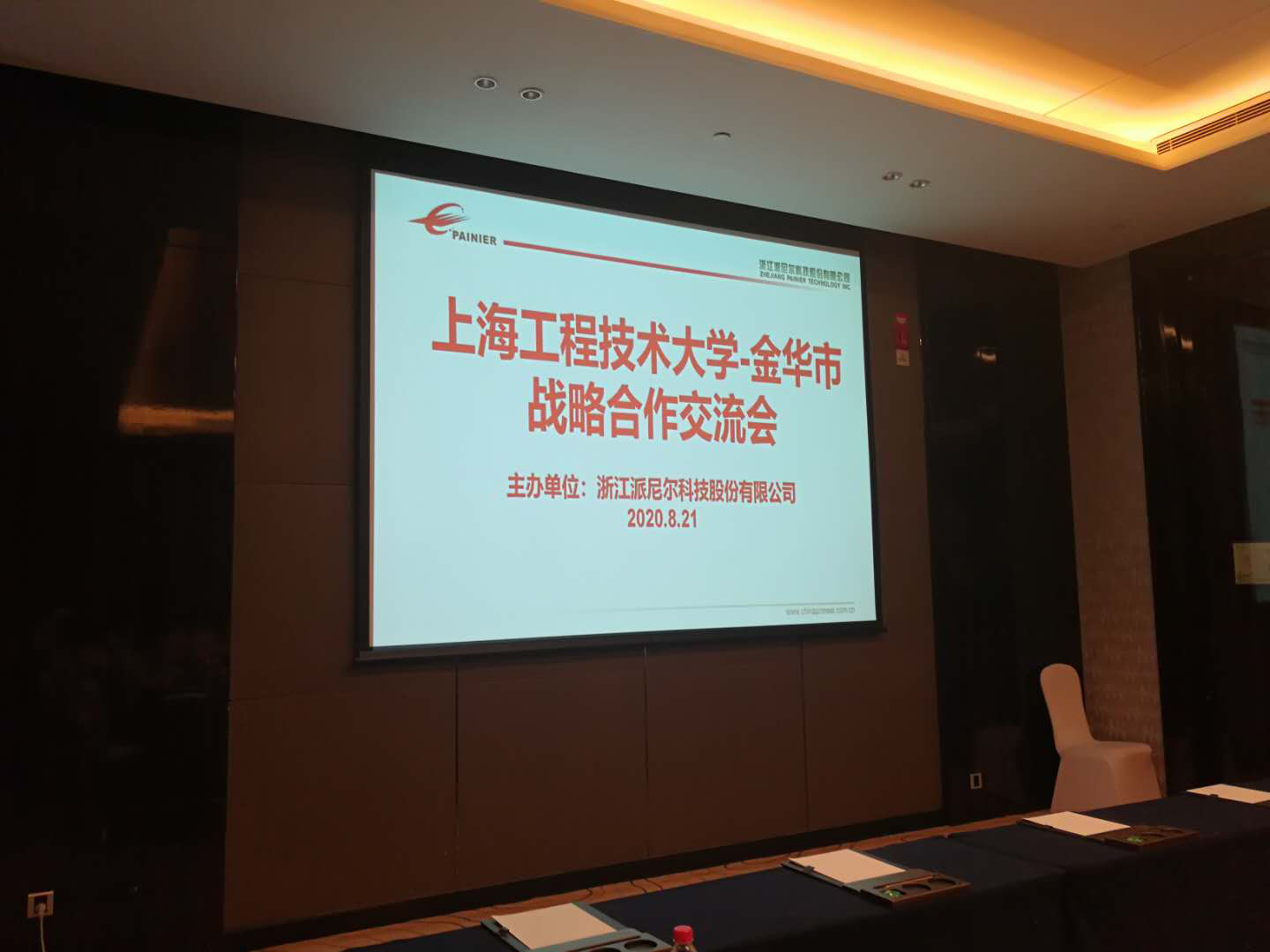 为了促进与金华市政府的战略合作,8月21日—22日上海工程技术大学-金华市战略合作交流会在金华市召开。该项活动由高等研究院、机械与汽车工程学院和对外合作办公室共同谋划,浙江派尼尔科技股份有限公司主办。我校副校长夏春明、高等研究院常务副院长陈思浩、机械与汽车工程学院院长及机器人研究所所长张华、机械与汽车工程学院副院长严祯荣教授、先进车用动力研究所所长缪雪龙教授、先进车用动力研究所副所长郑金保副教授、对外合作办外联科科长熊思奇一行7人参加了交流活动。金华市政协副主席胡锦全、金华市经济和信息化局副局长李中军、金华市经信局装备处处长俞新钱、浙江派尼尔科技股份有限公司董事长杨慧明、副总经理王俐、董事长秘书张鹏、副总经理宋雄伟、副总工朱道庆等领导出席战略合作交流会。