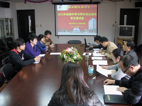 4月1日下午,电子电气工程学院在行政楼912会议室举行赴瑞典和美国交换生选拔面试会。经前期宣传、动员和资格审核, 2010级部分学生参加了面试。学院院长王裕明,院党委书记茅蕾,党委副书记王东阳,副院长史志才、余朝刚担任评委。会议由王裕明院长主持。 在面试过程中,同学们用英文分别作了自我介绍,展示了各自的优势和特长,表达了赴海外交换学习交流的强烈愿望,并表示父母对此次交换生学习的支持和鼓励。评委们根据每位学生的特点,有针对性地提出了意见和建议。 面试会上,王裕明院长希望同学们通过出国学习,丰富专业理论知识,体会异国文化,在学习中扩展视野、提升素质、锻炼能力。同时,王院长希望同学们努力成为中外文化交流的纽带,通过学分互认项目,增进校际间的友谊,促进双方在教育教学、文化交流方面的发展,为培养上海建设发展“四个中心”和国际化大都市的优秀人才奠定基础。 同学们纷纷表示,如果能被选为国际交换生赴海外学习,一定珍惜难得的学习机会,刻苦专研,锻炼才干,积累经验,为工程大争光,为祖国争光。