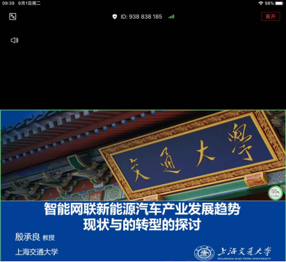 9月1日上午,通过华为云会议视频平台,上海交通大学殷承良教授为“新能源汽车学科创新人才培养”研究生暑期学校作题为《智能网联新能源汽车发展趋势现状与转型的探讨》的线上专题讲座。讲座由机械与汽车工程学院副院长郭辉教授主持。