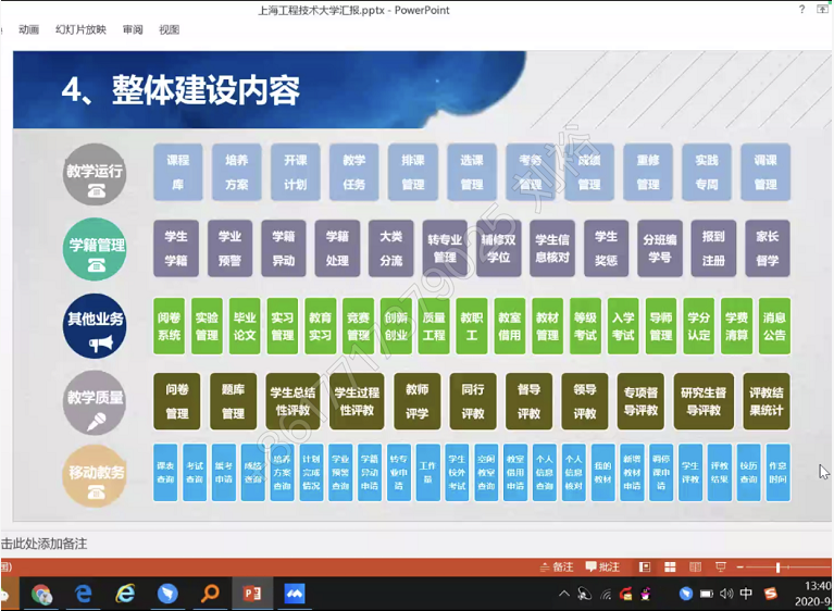 为进一步做好教务处“十四五”期间教学管理及信息化建设开篇布局工作,提升现代教育教学管理水平,教务处于9月3日以在线会议形式召开了教学管理信息系统优化升级工作第一次交流研讨会。教学管理信息系统行业专家、教务处、开发商相关人员参加研讨会。