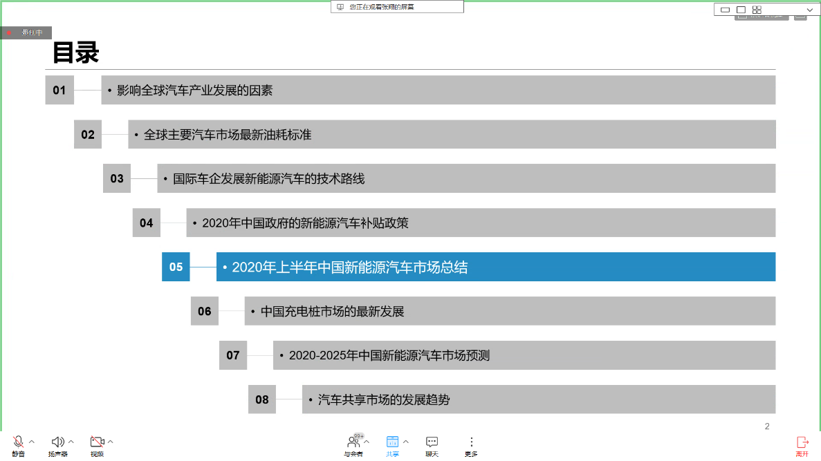 张翔研究员围绕中国新能源汽车市场的未来发展趋势这一命题,向学员们介绍了目前新能源汽车广阔的研发领域以及人们对智能汽车愈发关注的现状;对影响全球汽车产业布局的因素以及全球市场最新耗油标准做了详细讲解;以特斯拉的生态系统及其驱动电机的解决方案为例,详细阐述了国际车企发展新能源汽车的技术路线,以及大众、吉利在新四化领域的战略布局,丰田新能源汽车技术路线分析等。张翔研究员还对2020年中国政府的新能源汽车补贴政策和上半年中国的新能源汽车市场做了具体介绍,并对中国新能源汽车市场和中国充电桩的发展进行了预测。