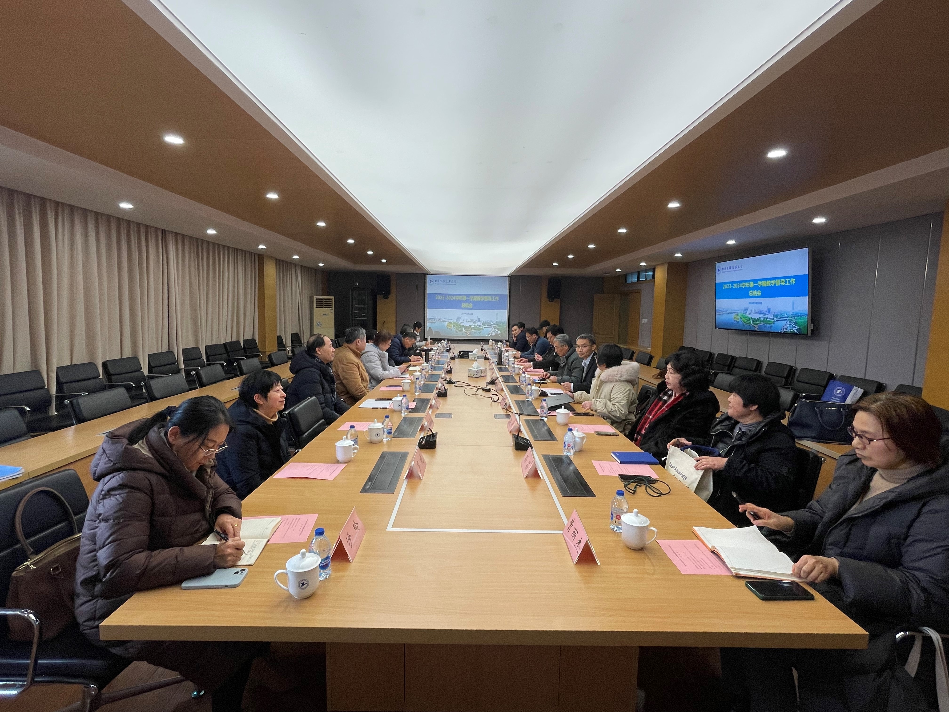 1月22日下午,2023-2024学年第一学期教育教学督导工作总结会在长宁校区科创楼725会议室召开,副校长夏春明,教学督导专家组成员,质量办、教务处、研究生处负责人参加会议,会议由教务处处长饶品华主持。
