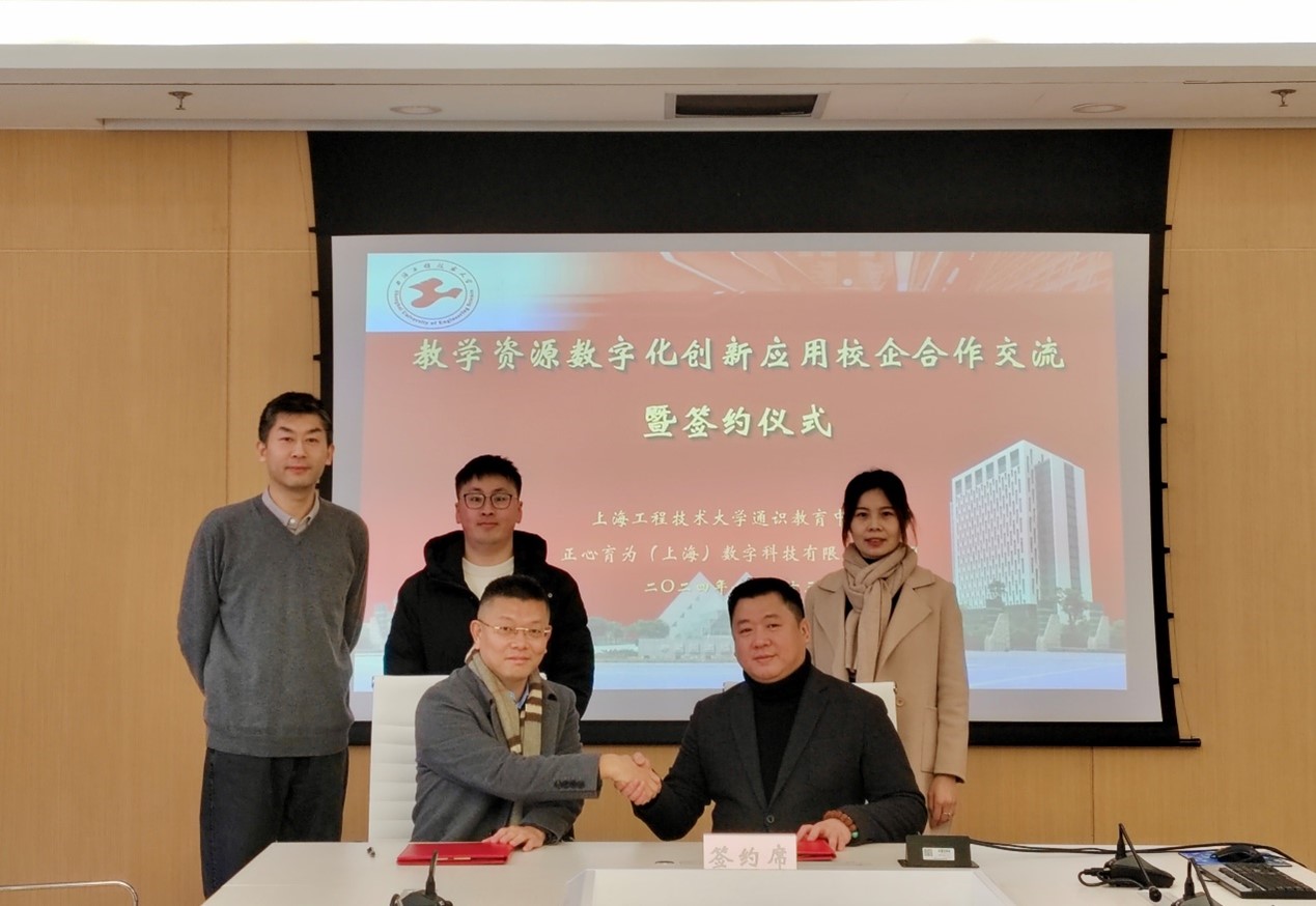 1月23日上午,通识教育中心与正心育为(上海)数字科技有限责任公司在行政楼204室举行教学资源数字化创新应用校企合作交流会暨签约仪式。通识教育中心主任胡越,正心育为(上海)数字科技有限责任公司总经理张伟等出席活动。