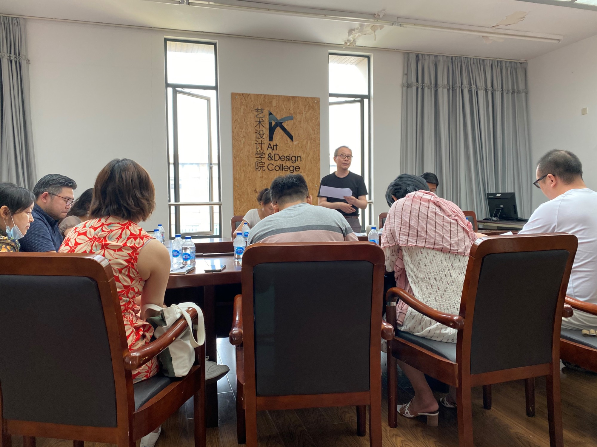 9月7日全天,在我校新学期第0周的第一天,艺术设计学院党委副书记、院长高瞩主持召开学科发展规划与本科专业建设专题研讨会议,院党委副书记刘江、副院长李光安、任钟鸣、刘芹出席会议。各系主任、副系主任、研究室负责人、院学科办列席会议。