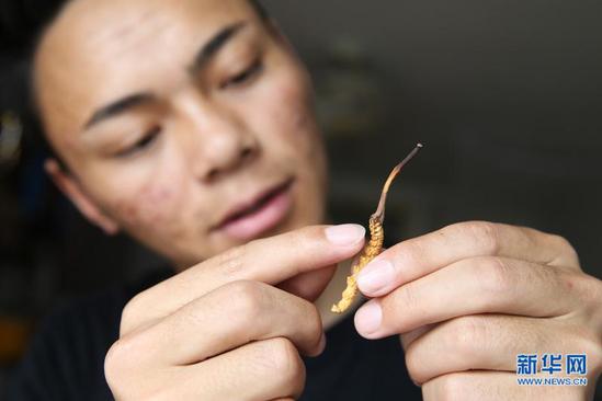 在上海工程技术大学内,罗拉在鉴别虫草的质量(6月8日摄)。 “95后”罗拉出生于西藏那曲比如县达塘乡的一个普通家庭。目前在上海工程技术大学求学。 学习之余,罗拉经常会约上同学到繁华的上海街道走走看看。有次路过一家售卖“西藏那曲冬虫夏草”的店面,“他们销售的冬虫夏草不仅价格比老家高,质量也远不及老家好。”这让罗拉萌生了创业的念头。他决定把家乡的优质虫草带到黄浦江边,打造一个属于那曲冬虫夏草的品牌。 “刚开始没有经验,也没有人脉,生意全靠两条腿一张嘴。”罗拉称,“要把自己的产品推销出去确实不易。除了要在线上写很多文章进行推广,线下还要不停找商家谈合作”。短短一年时间,他几乎把上海销售冬虫夏草的店铺跑了个遍。 功夫不负有心人。“三年过去了,项目渐渐上了轨道,2016年我就卖了价值超过50万的虫草”。罗拉对这一点很自豪,“其实我创业的初衷很简单。期望通过自己的努力,让藏区农牧民的原生态绿色产品走出高原,走向更远大的世界。” 新华社记者 丁汀 摄