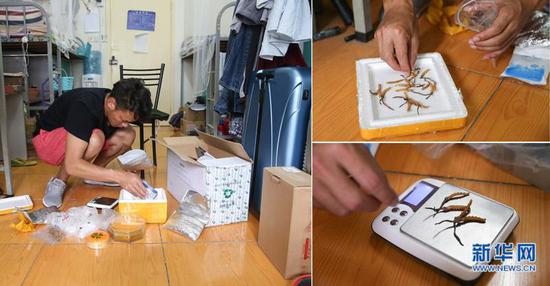 在上海工程技术大学宿舍内,罗拉在分类打包刚从西藏老家寄过来的冬虫夏草(拼版照片,6月8日摄)。 “95后”罗拉出生于西藏那曲比如县达塘乡的一个普通家庭。目前在上海工程技术大学求学。 学习之余,罗拉经常会约上同学到繁华的上海街道走走看看。有次路过一家售卖“西藏那曲冬虫夏草”的店面,“他们销售的冬虫夏草不仅价格比老家高,质量也远不及老家好。”这让罗拉萌生了创业的念头。他决定把家乡的优质虫草带到黄浦江边,打造一个属于那曲冬虫夏草的品牌。 “刚开始没有经验,也没有人脉,生意全靠两条腿一张嘴。”罗拉称,“要把自己的产品推销出去确实不易。除了要在线上写很多文章进行推广,线下还要不停找商家谈合作”。短短一年时间,他几乎把上海销售冬虫夏草的店铺跑了个遍。 功夫不负有心人。“三年过去了,项目渐渐上了轨道,2016年我就卖了价值超过50万的虫草”。罗拉对这一点很自豪,“其实我创业的初衷很简单。期望通过自己的努力,让藏区农牧民的原生态绿色产品走出高原,走向更远大的世界。”