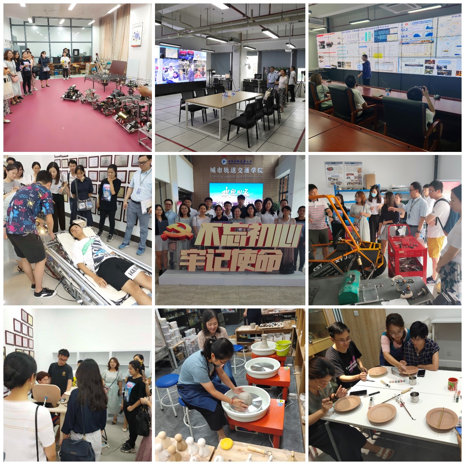 在示范班课程教师的带领下,青年留学归国教师在松江二期工程现代交通工程大楼参加现场教学,体验了我校机械与汽车工程学院的大学生方程式赛车队、城市轨道交通学院基于互联网+大数据的轨道交通安全检测预警系统平台、电子电气工程学院的5G互联网实验室,并在第二天于教学楼C一楼的艺工坊陶瓷工作室参加艺术修养提升体验课。培训班的青年留学归国教师通过一系列的观摩和体验,深入了解了学校的实践教学环节,对我校的人才培养体系有了进一步理解,收获颇丰。