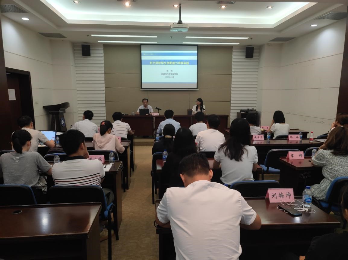 郭辉教授从六个方面分享了机械与汽车工程学院在学生创新能力培养方面的经验和做法。他详细介绍了由学生和导师构成的重点科研竞赛团体组织——锐狮车队,在培养学生创新能力实践过程中的经验做法,并将自身的经验和体会与海归青年老师进行了分享,正是依托特色的实践创新教学体系,学校为社会培养了大批优秀的管理、工程、技术型人才。