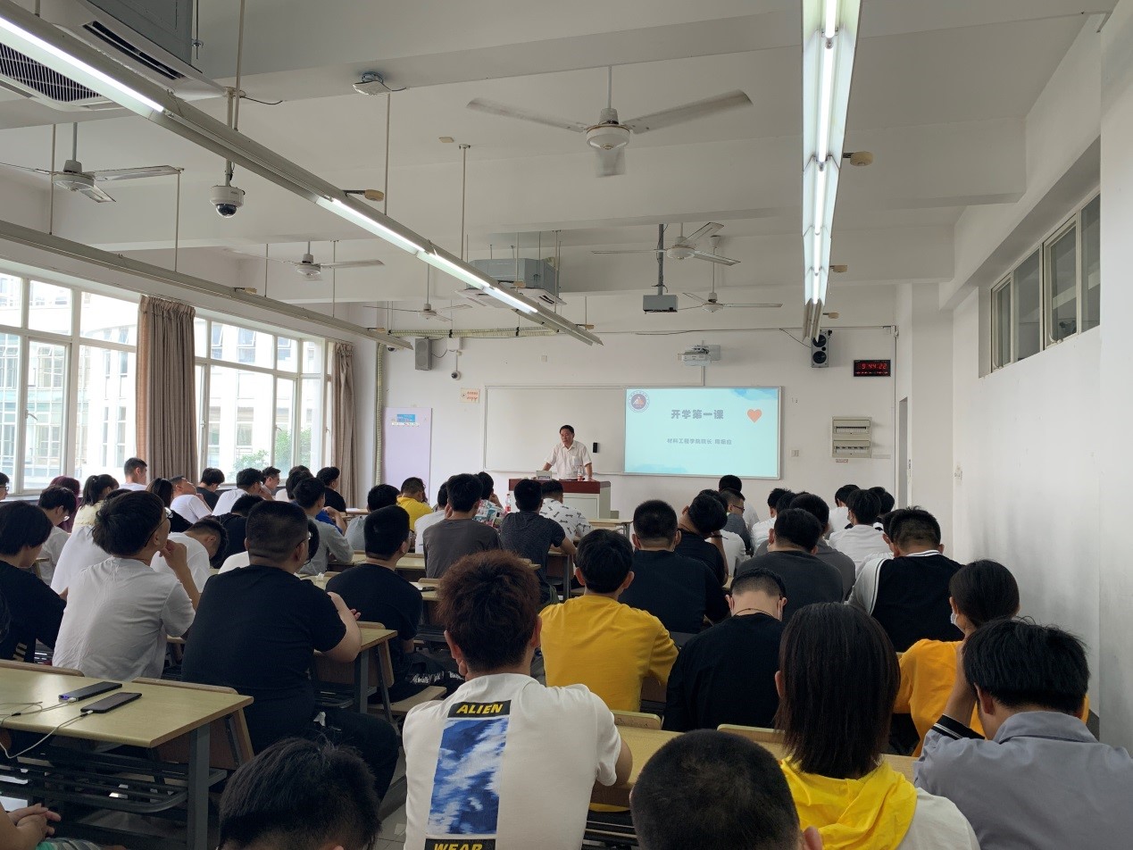 9月10日上午,材料工程学院在教学楼E210举办了“院长说——开学第一课”主题教育活动。材料工程学院院长周细应、党委副书记黄中子、学生工作办公室主任沈园花、辅导员刘晓明及17级、18级、19级返校学生100余人参加了教育活动。