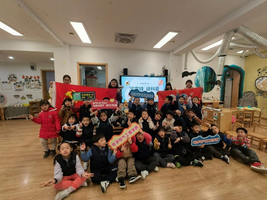 “哇,这个电子开关好神奇”!上海市徐汇区科技幼儿园的小朋友对研究生哥哥姐姐们搭建的电学小实验发出连连惊叹。3月1日,在第61个学雷锋纪念日来临之际,电子电气工程学院研究生第二党支部的师生党员来到上海市徐汇区科技幼儿园大一班,开展“大手牵小手 ‘电’亮科普路”学雷锋志愿服务活动。