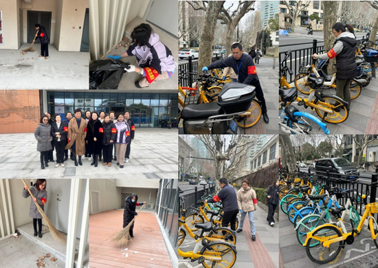 学院教工第一党支部和教工第二党支部全体党员以长宁校区为中心,沿着学校周边仙霞路、娄山关路、虹古路、芙蓉江路为一圈,开展“爱护共享单车,助力绿色出行,共享文明环境”志愿服务活动。党员们有序分工,一部分志愿者将路边倒下的单车扶起并摆放整齐,将占道、乱停乱放的共享单车回归原位,另外一部分志愿者引导市民文明有序摆放非机动车辆,倡导广大市民绿色、安全、文明出行。