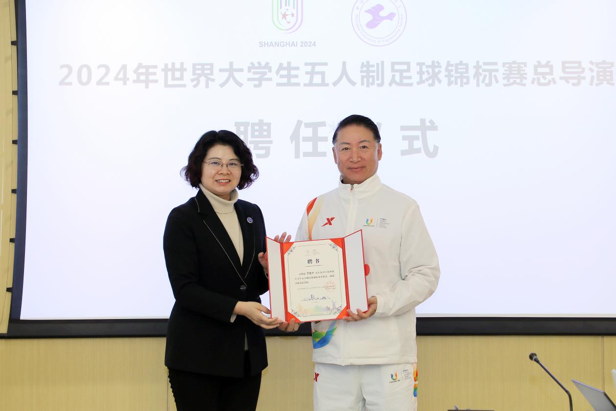 会上,朱晓青副书记、副校长代表学校组委会为李建平先生颁授总导演聘书,并向李建平总导演对我校赛事筹备工作的鼎力支持和倾情付出表达诚挚感谢,同时强调,赛事开幕式、闭幕式等仪式是筹备工作中举足轻重的环节,在李建平总导演的指导下,组委会各部门要通力合作,把筹备工作进一步做实、做细、做精。第一,要彰显“文化”。要积极借助赛事筹办的机遇,深入、精彩地向世界展现中华优秀文化、海派文化、松江底蕴,促进来自世界各国和地区的大学生之间的互动,实现多层面的人文交流,推动中华优秀传统文化的宣传和传播。第二,要彰显“精神”。要利用好赛事的举办,搭建起传承五人制足球运动薪火、推动五人制足球教育发展的平台,为世界呈现一场专业化、规范化、国际化的世界大学生五人制足球项目最高规格的体育赛事。第三,要彰显“特色”。近年来,学校科技创新、体育教学成果均日益显著,此次赛事的成功申办,学校在为世界呈现一场精彩的五人制足球盛宴的同时,也要展示好上海“国际体育赛事之都”的应有风采,并凸显学校产教融合、科教融汇的办学特色,充分彰显“上工程”的育人风采。