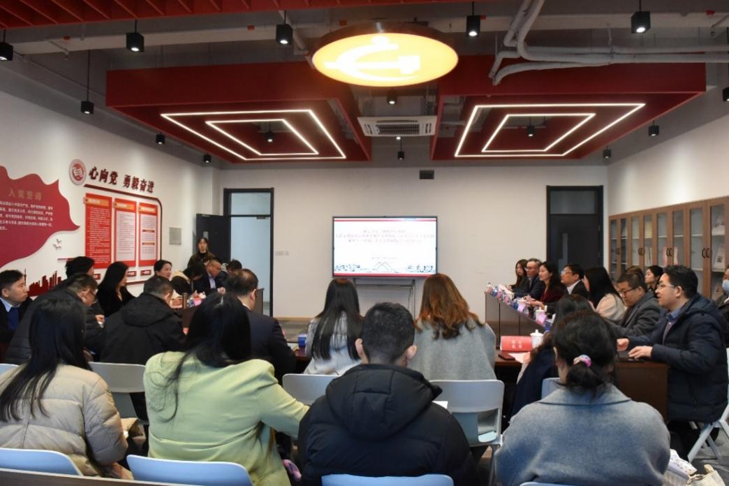 人工智能产业集群党委书记李蓓介绍了下阶段集群和学院的合作重点。洞泾镇党委副书记周乾新讲解了政府在推进学生就业实习方面的政策保障措施,并对未来校企产学合作的新模式提出了宝贵建议。会上大家积极发言、深入沟通,现场接收了部分学生简历,建立了学生实习就业工作的长期联络机制。