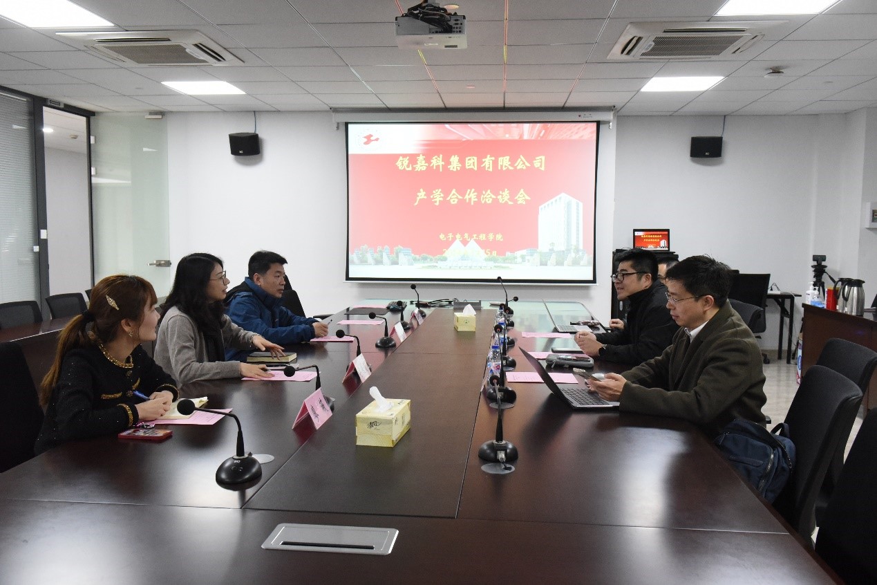 随后,双方进行了深入的座谈交流。万卫兵介绍了学院发展历程、党建工作、学科建设、学生培养、科教融合、产教融合等情况。冯中泉对锐嘉科集团有限公司进行了简单介绍,并提出了公司的相关需求。汪巍就如何以企业需求为导向,依托地方政府支持,推动园区数字化、智能化发展进行了深入探讨;提出产学研深度融合是推动科技创新和产业升级的关键,希望双方能够加强合作,共同探索出一条符合双方发展需求的合作之路。