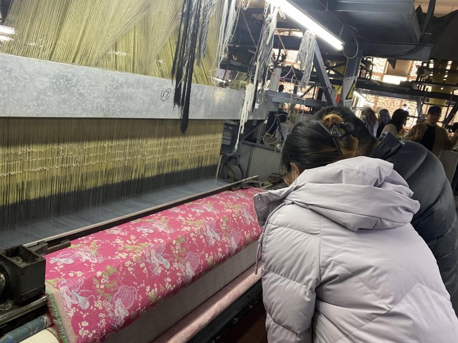 鼎天时尚科技股份有限公司是一家主营提花面料设计、研发和生产的公司,拥有多年的行业经验和先进的技术设备。公司总裁柴方军对我校走访人员表示热烈欢迎,总裁助理刘戴俊带领老师们参观了公司的荣誉墙和博物馆,并走访了各个部门,看望了在各部门实习的学生们。