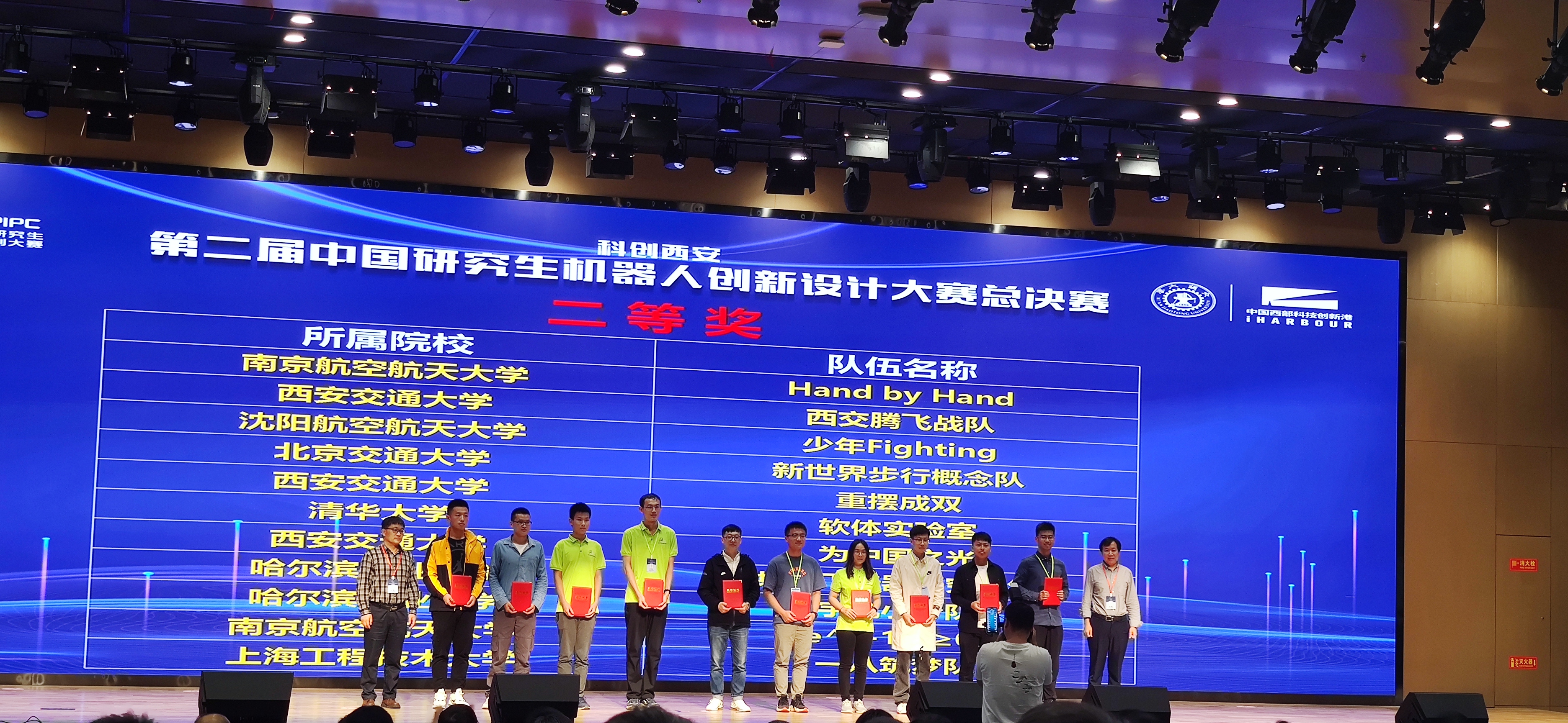 第二届中国研究生机器人创新设计大赛于9月23日至25日在中国西部科技创新港举行,大赛按照创意作品的成熟度和技术特点分成仿真组、部件组和集成组三类,涉及先进工业机器人、医疗机器人、助老助残服务机器人等机器人技术及其应用的多个领域。来自清华大学、哈尔滨工业大学、浙江大学、西安交通大学等69所高校和科研所的154支队伍进入决赛。经过激烈角逐,我校参赛队伍“一八筑梦队”作品“可重构可展多模式步滚移动机器人” 成功晋级全国决赛并获得全国二等奖。参赛队员为研究生刘香玉、倪聪、平安,指导教师为张春燕老师。