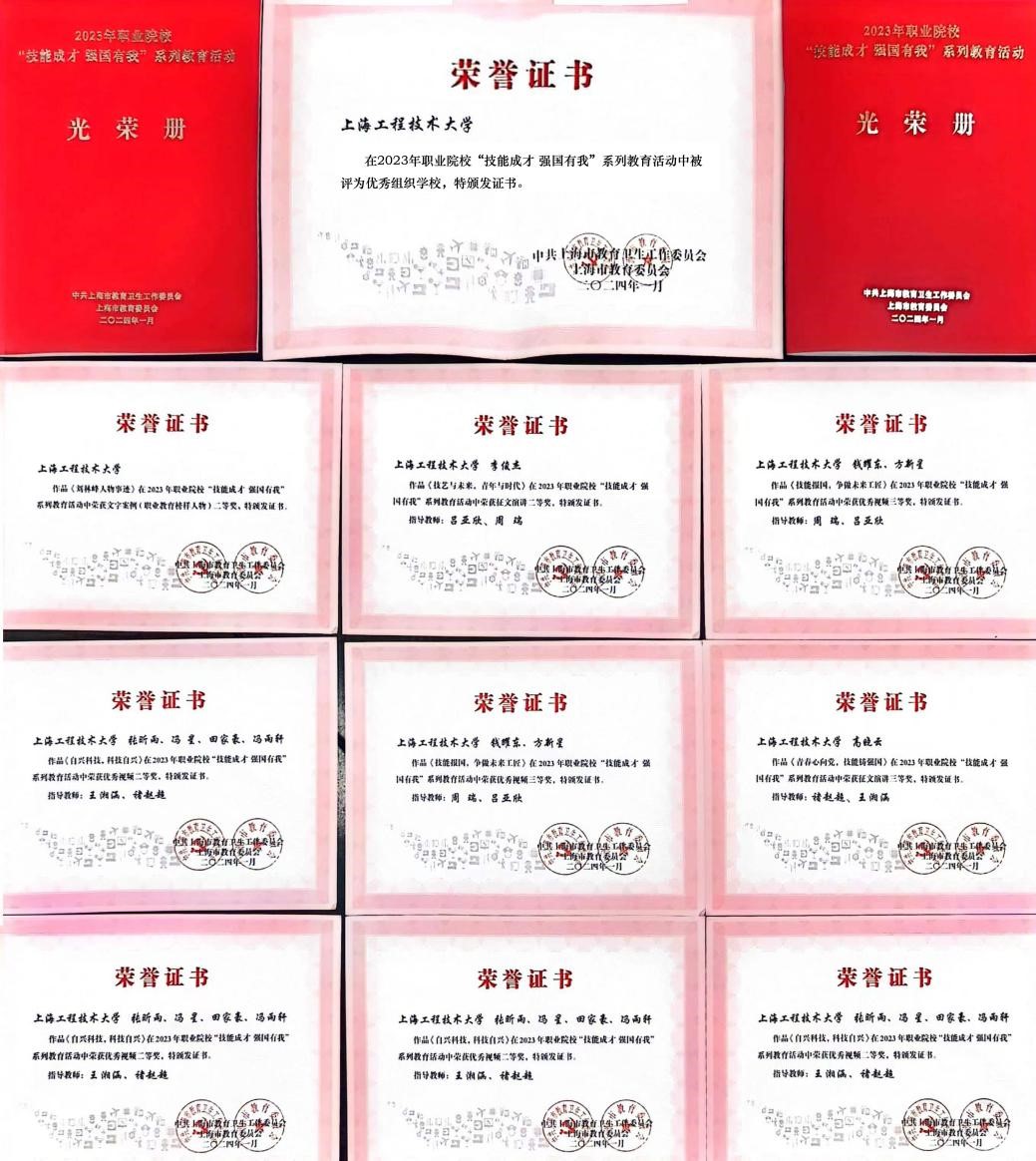高职学院此次共报送上海市教委优秀作品8件、职业教育榜样人物事迹4例。最终,通过选拔,高职学院共计荣获6项奖项,包括优秀组织学校奖1项、二等奖3项、三等奖2项。