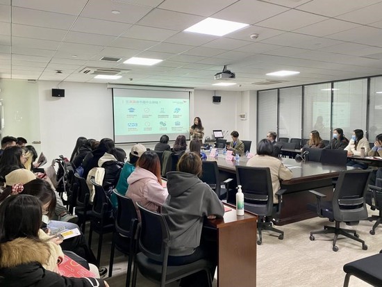 随后,爱丁堡龙比亚大学中国中心总监Carina Liao为我校学生进行了精彩的海外留学宣讲。她从多个角度生动分享了留学爱丁堡龙比亚大学的诸多优势和机会,为我校学子开启了更广阔的国际视野与发展空间。
