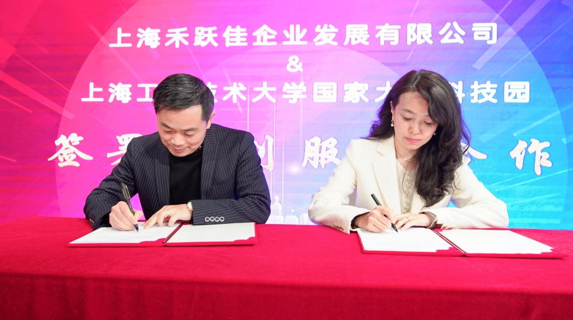会上还签订了上海工程技术大学国家大学科技园与禾跃佳“全国政企校招商服务平台”的合作框架协议。禾跃佳政企校招商服务平台暨科创服务平台以“引资、引智、引质、引流”为发展理念,整合政府、企业、高校资源,全方位、多角度服务赋能,提供全面、高效的解决方案,实现多方共赢。大学科技园联合禾跃佳共同合作开展技术支持、科技成果转化、创业孵化、科技金融、人才引进等服务,开放共享机制,落实资源保障。