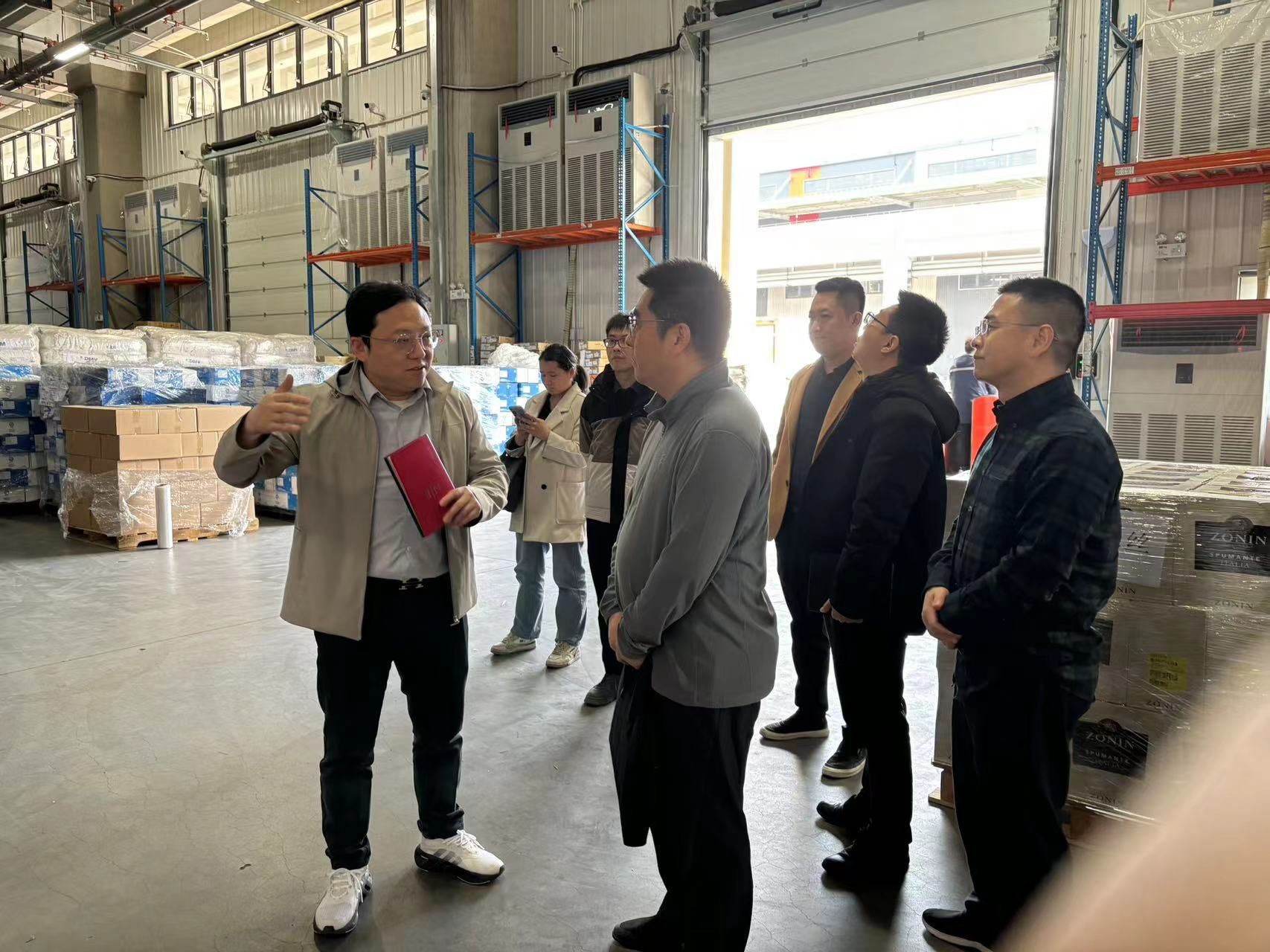 在上海华松物流有限公司,学校一行参观了公司的仓储设施和设备,并走访了各个部门,看望了在各部门实习的学生们,并认真记录了学生们的意见和建议。
