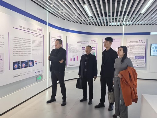 会前,覃旭瑞一行参观了长三角国创中心展厅,对国创中心的建设背景、功能定位以及着力构建的产业创新体系和部分企业项目进行了详细讲解。