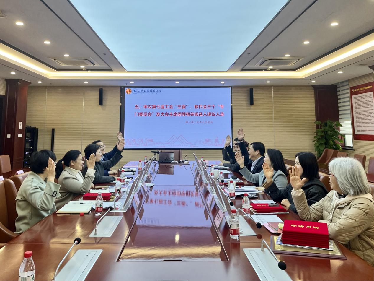 校工会副主席张鹏汇报了学校第七届教代会暨工代会筹备工作开展总体情况。第六届工会委员会委员听取了报告,并对第七届工会“三委”、教代会三个“专门委员会”及大会主席团等相关候选人建议人选进行了认真审议,后续学校工会将严格按照程序,做好“双代会”的各项换届工作。