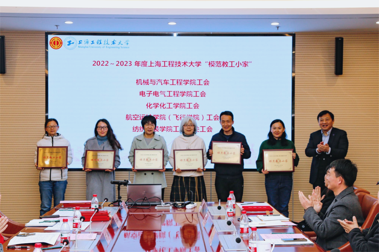 会上,史健勇为荣获2022-2023年度上海工程技术大学“模范教工小家”荣誉称号的部门工会颁奖。