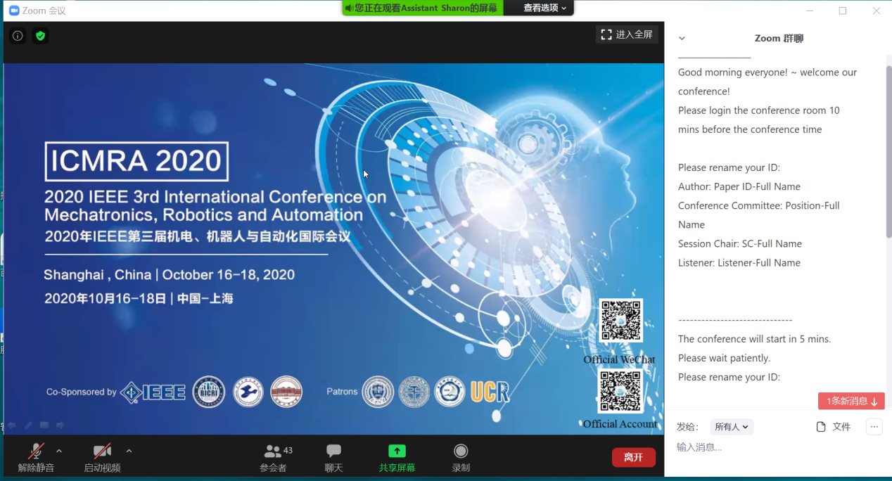 10月17-18日,来自美国、德国、日本、加拿大、丹麦、哥斯达黎加、澳大利亚以及中国的专家学者“云聚一堂”,共同参与了由上海工程技术大学主办、机械与汽车工程学院承办的2020年第三届机电、机器人与自动化国际会议(2020 the 3rd International Conference on Mechatronics, Robotics and Automation),就机电、机器人以及自动化领域热点问题进行了交流、研讨。