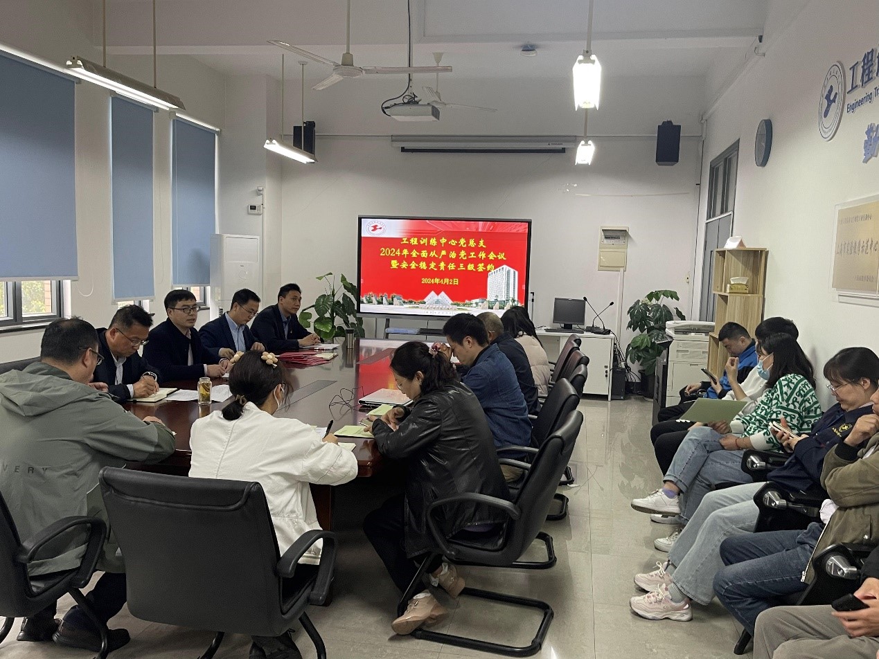 为进一步贯彻落实学校党委关于全面从严治党的工作部署,为工程训练中心(创新创业学院)事业高质量发展提供坚强政治保障,4月2日下午,工程训练中心党总支举行2024年全面从严治党工作会议暨安全稳定责任三级签约。工程训练中心(创新创业学院)班子成员及全体党员出席会议,会议由中心党总支书记王成涛主持。
