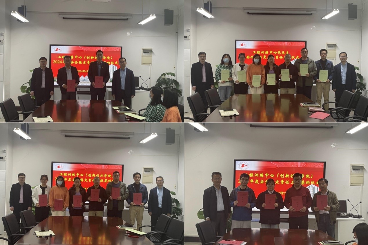 会上举行了全面从严治党签约仪式和安全稳定签约仪式。工程训练中心(创新创业学院)班子成员和各部室负责人及相关教师分别签订了2024年全面从严治党责任书、2024年安全稳定综合治理责任书。