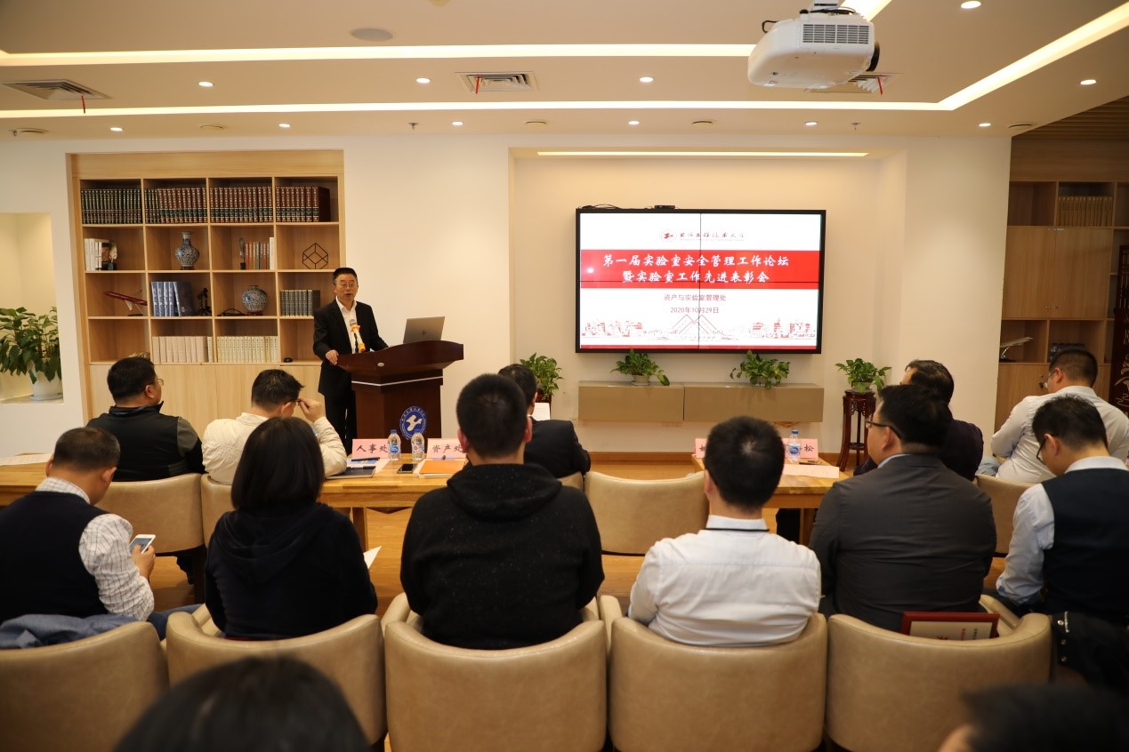 10月29日,学校第一届实验室安全管理工作论坛暨实验室工作先进表彰会在校文化之家召开,姚秀平副校长出席会议,人事处、科研处、教务处、保卫处、资实处负责人和各学院的领导及师生代表参加了会议。