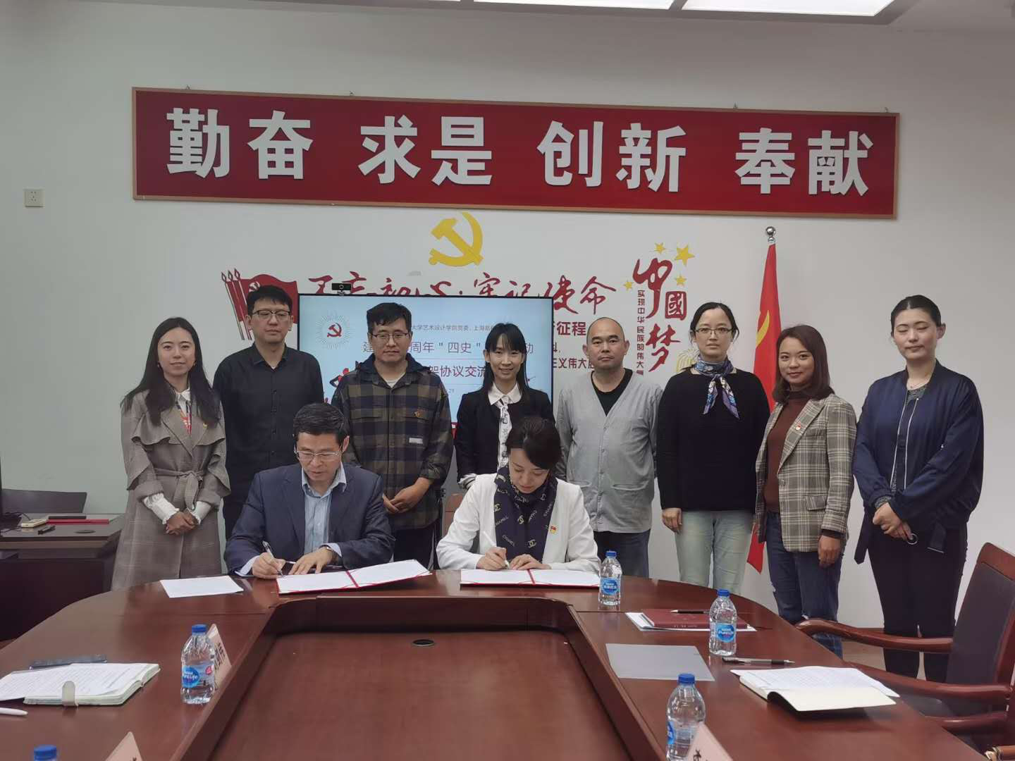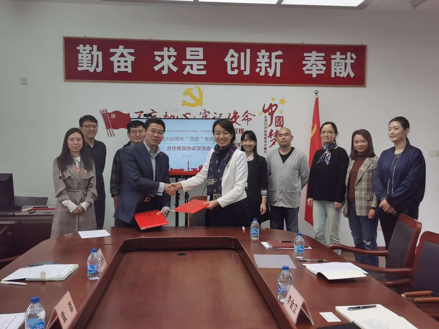10月28日上午,艺术设计学院党委与上海易稻科技有限公司举行了建党100周年“四史”教育活动合作框架协议签约交流会。会议由上海工程技术大学艺术设计学院党委书记袁蓉主持,上海易稻科技有限公司总经理李金立,艺术设计学院博士工作站党支部书记刘剑伟,艺术设计学院产学研办公室副主任陈璐,艺术设计学院党委组织员杨爽及各支部党员代表参加了本次会议。