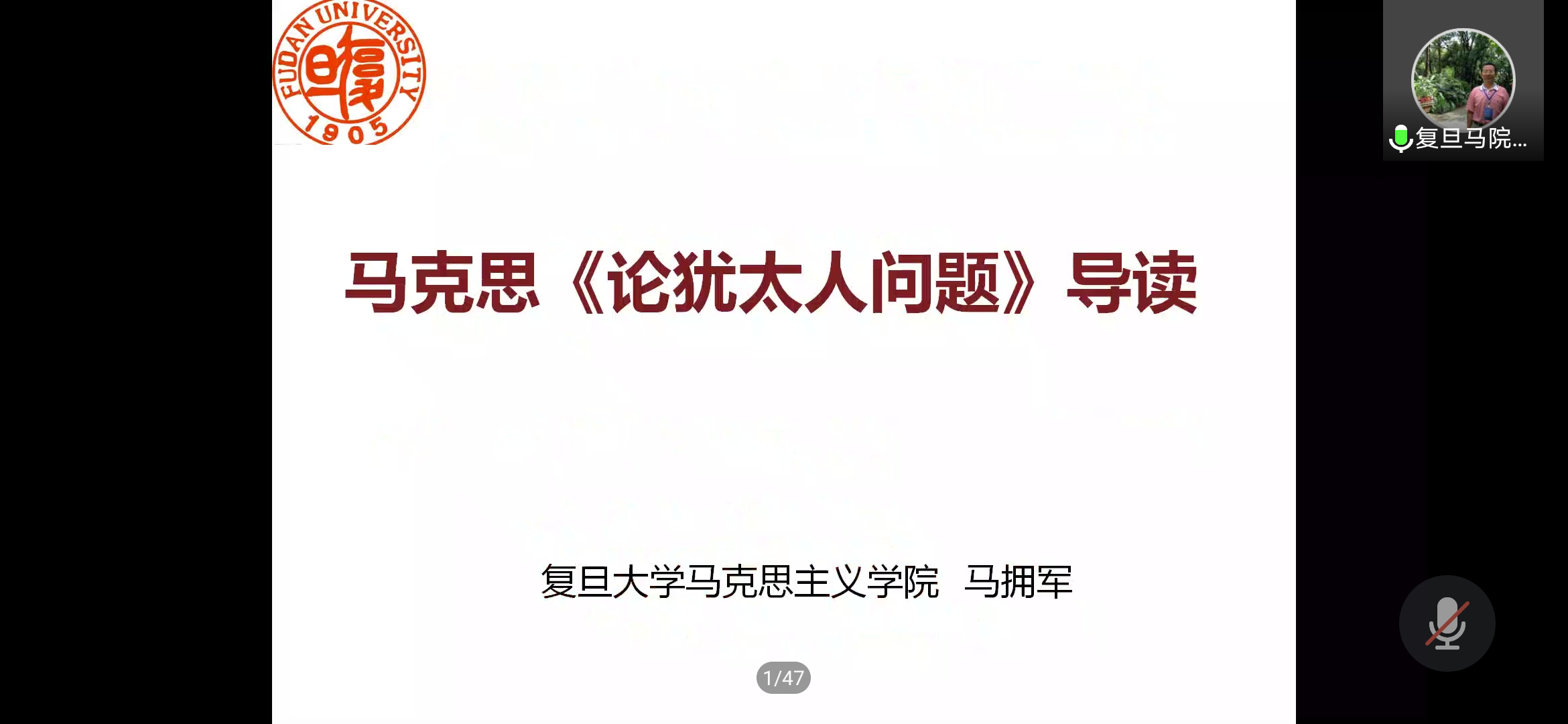 10月30日,马克思主义学院邀请马拥军教授作了一场题为“马克思的《论犹太人问题》”云端讲座。讲座在腾讯会议线上进行,来自上海工程技术大学、上海立信学院、复旦大学、华南科技大学等高校的二百多位教师和学生聆听了该讲座。马克思主义学院副院长孙晓艳教授主持讲座。