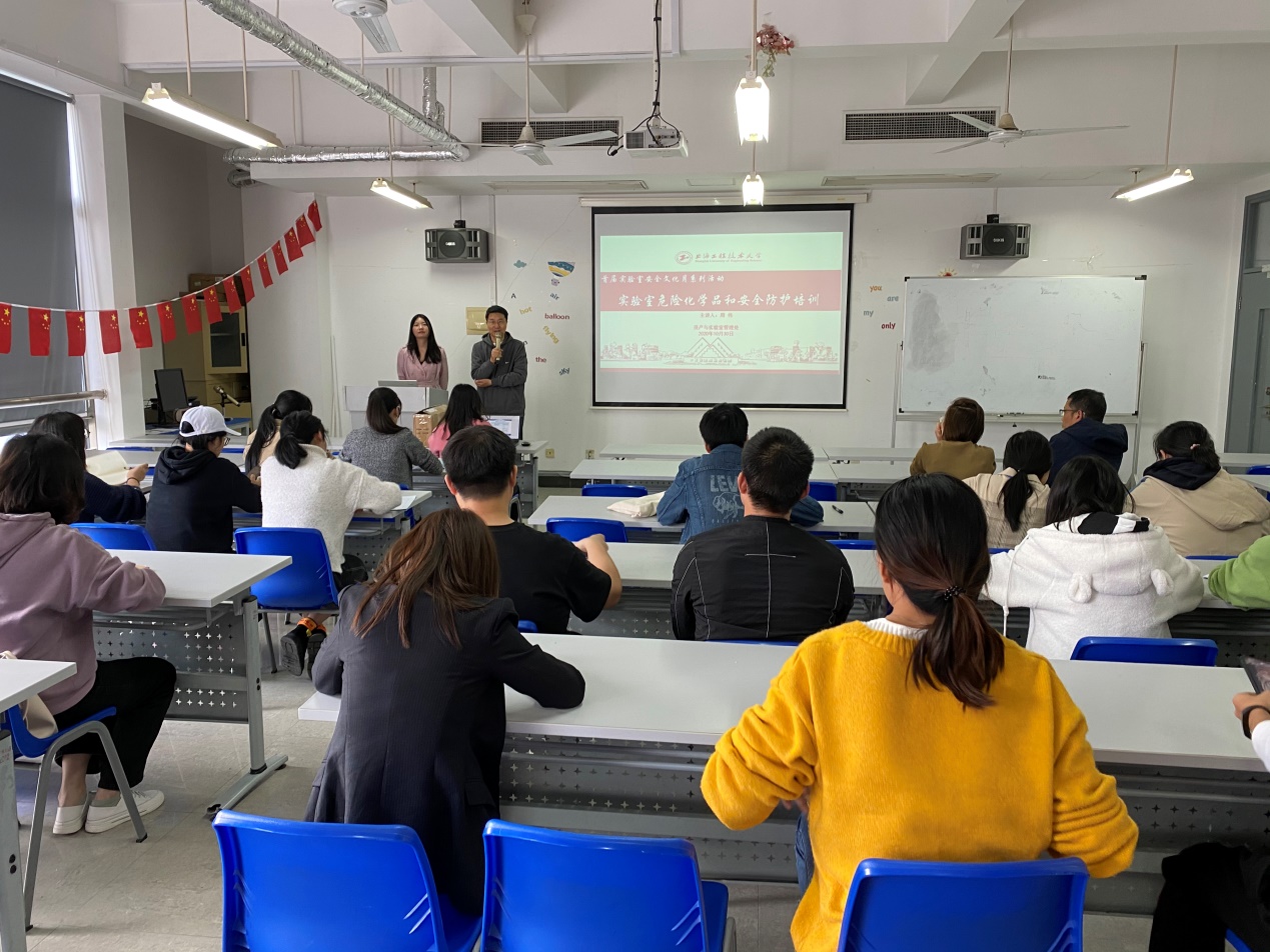 10月30日,我校实验室安全月系列活动“实验室危险化学品和安全防护专题培训”在实训楼4405会议室举办,共有50余名研究生和教师参加了本次培训。