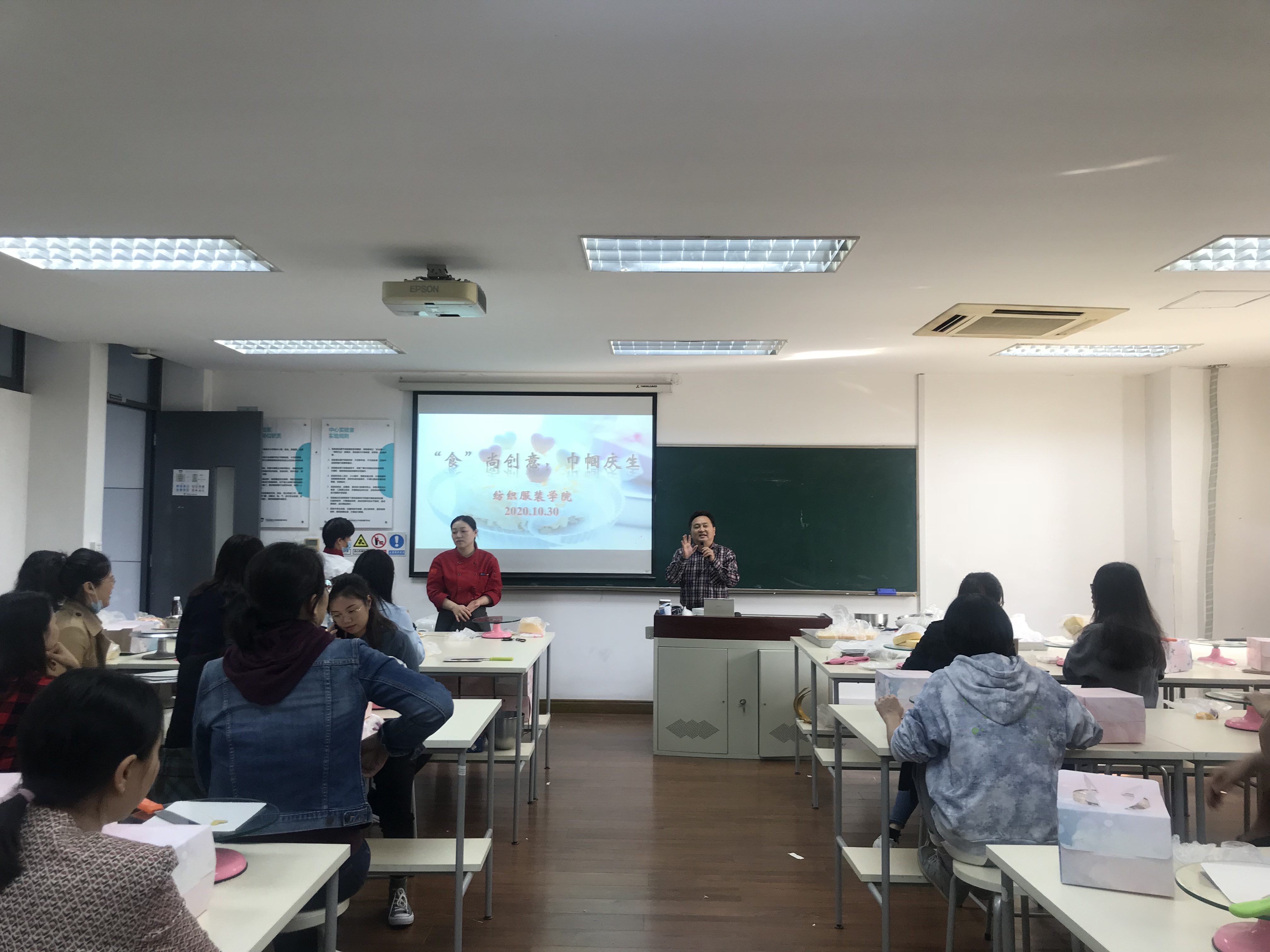 10月30日下午,纺织服装学院工会妇女小家在艺术楼A217举办“食尚创意,巾帼庆生”手工蛋糕DIY活动。