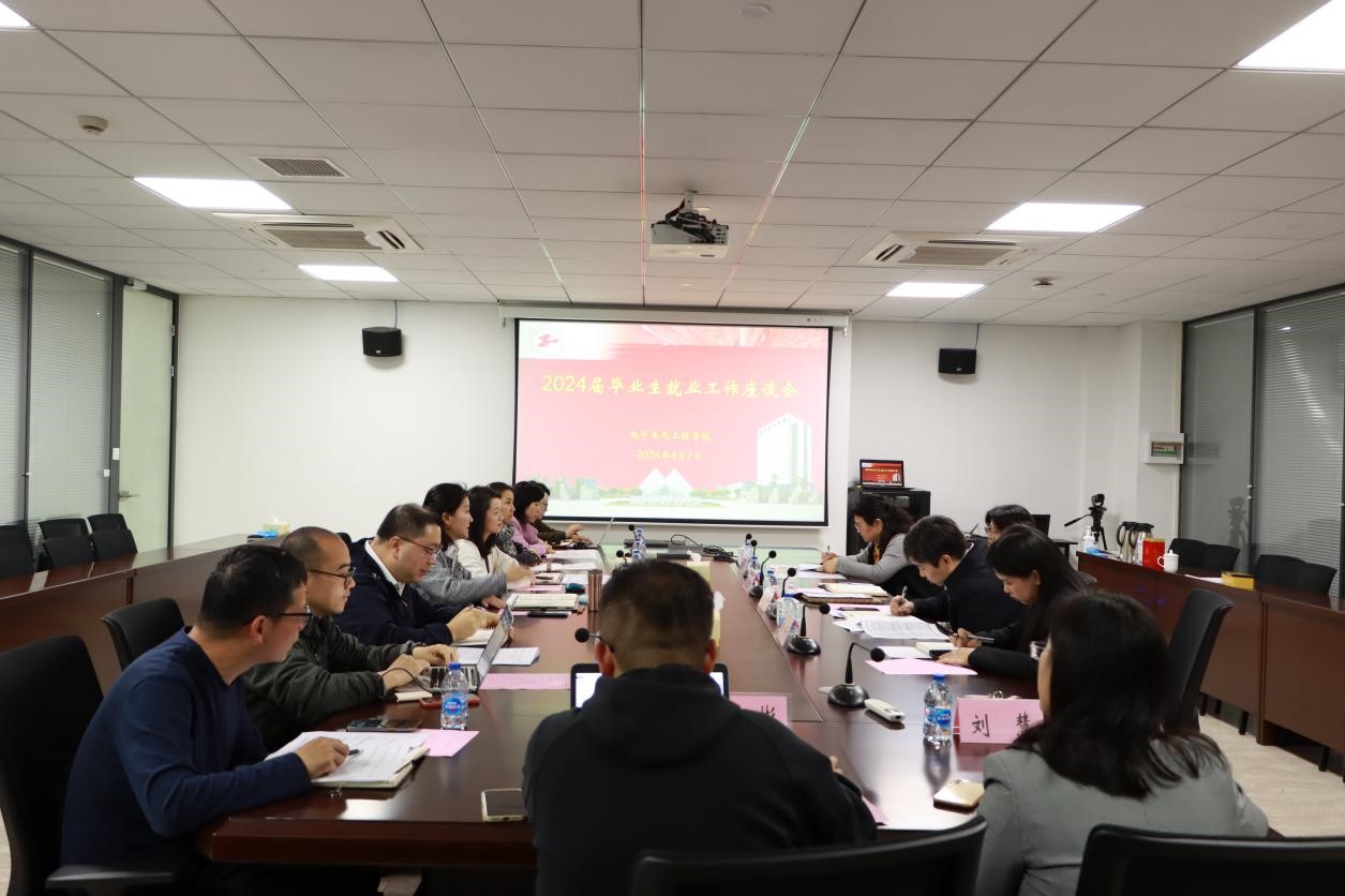 为深入贯彻落实党中央、教育部及上海市有关高校毕业生就业工作的决策部署,科学研判当前就业工作形势,拓宽就业渠道,进一步推动毕业生全面就业和高质量就业,4月7日,电子电气工程学院召开2024届毕业生就业工作座谈会,校党委副书记、副校长朱晓青出席会议,校党委学生工作部(处)长吕宁、副部(处)长缪琳,电子电气工程学院党委书记范君晖、党委副书记赵梦影、各系主任及就业辅导员参加会议,会议由赵梦影主持。