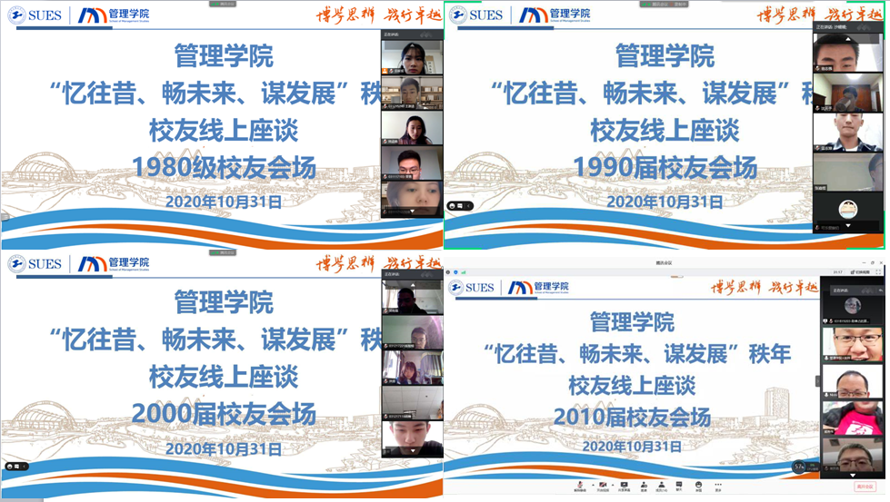 为推进我院校友工作,为校友交流沟通搭建平台,管理学院于10月31日举办了“忆往昔、畅未来、谋发展”秩年校友线上座谈和校友企业家线上论坛。