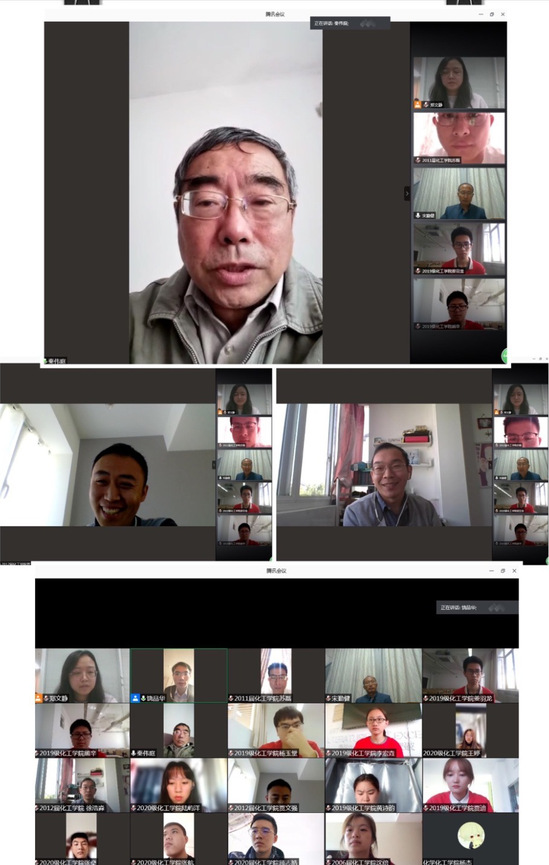 化学化工学院请来了退休老教师秦伟庭和学生们线上团聚,共叙师生情谊,一起为学院发展建言献策。