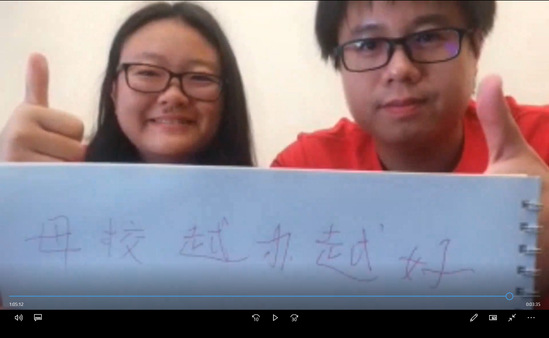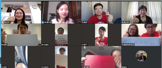 身着班服,展示手牌、手书、爱心手势是本次云聚会活动中最具仪式感的环节。