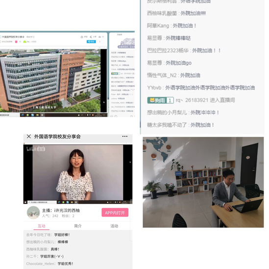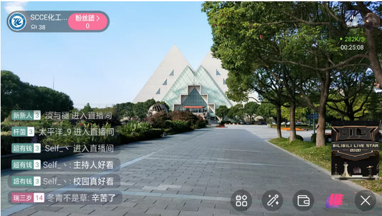 化学化工学院、材料工程学院特别安排了云游校园视频直播,为不能返校的校友们提供了目睹沪上最美校园金秋景色的契机,是本次活动中最贴心的环节: